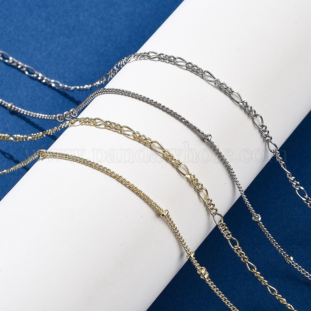 Латунные двухслойные ожерелья, Цепочки Фигаро и Спутниковые ожерелья для женщин, 304 из нержавеющей стали застежкой омар, стойки покрытие, без свинца и без кадмия, долговечный