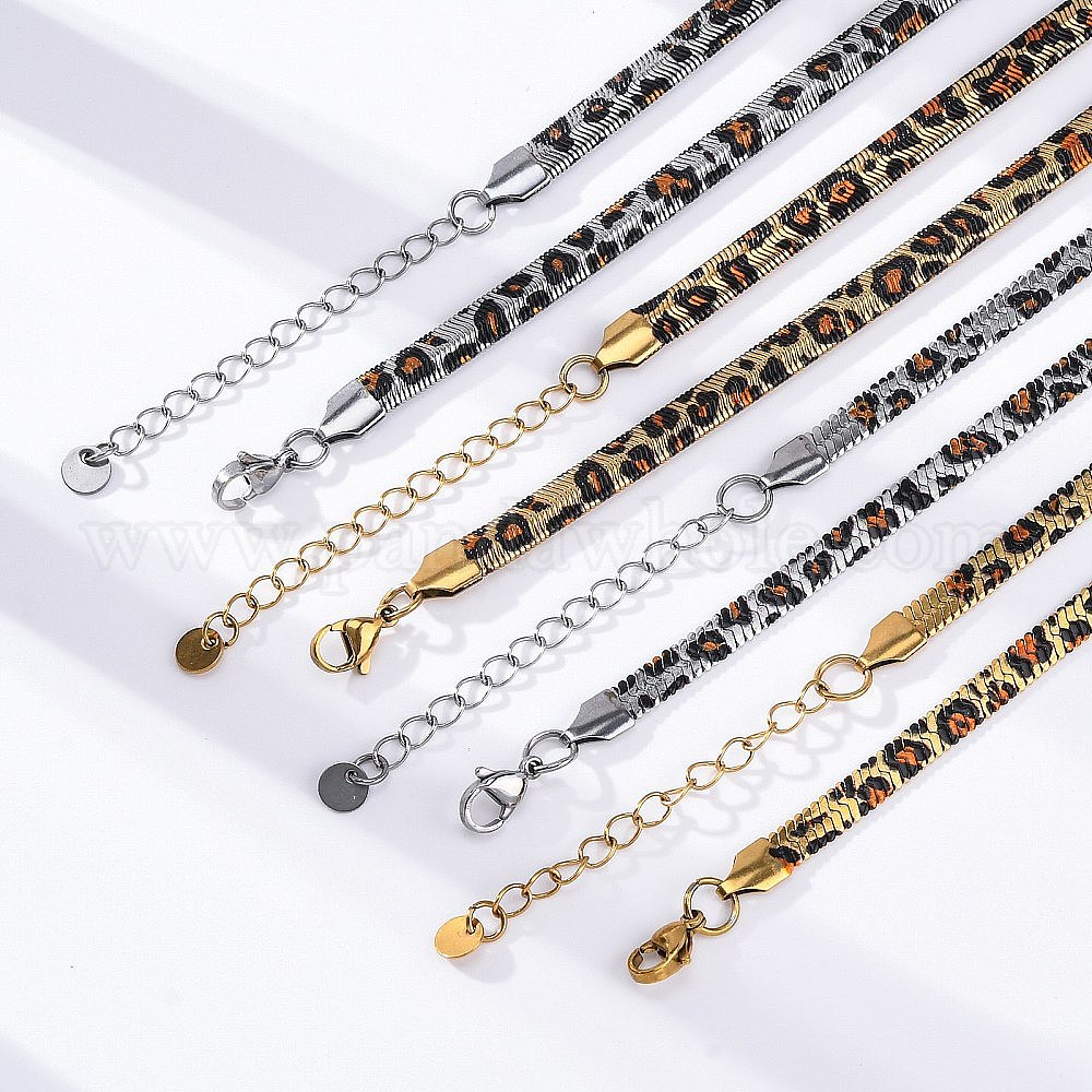 304 плоские ожерелья-змейки из нержавеющей стали с леопардовым принтом для женщин, ионное покрытие (ip)