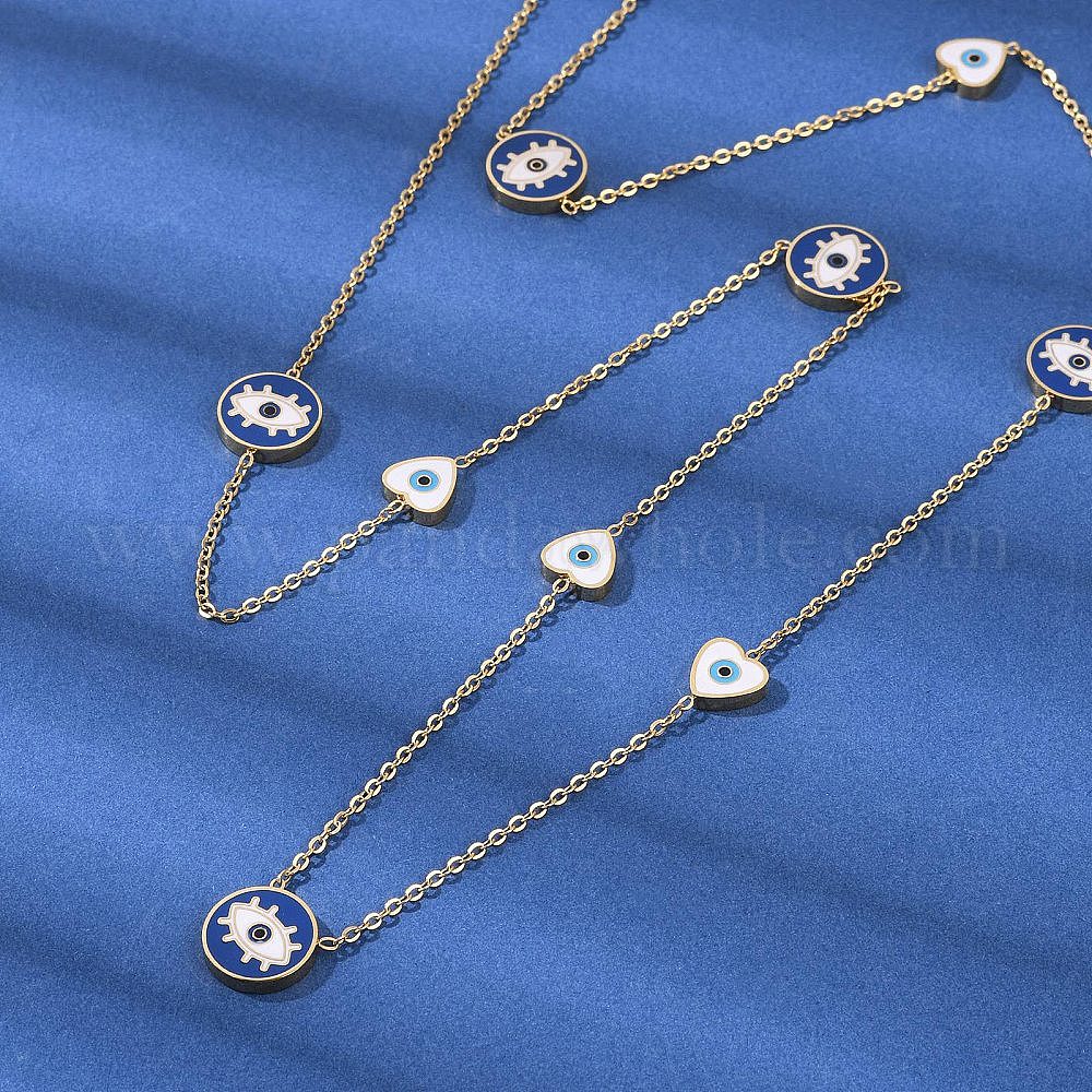 304 Длинные ожерелья из нержавеющей стали с синей и белой эмалью от сглаза, ионное покрытие (ip)