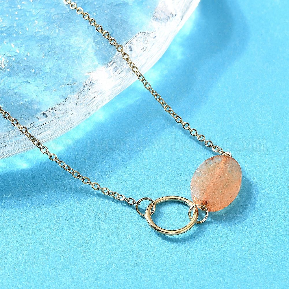304 Овальные звенья цепи из нержавеющей стали и окрашенного натурального белого нефрита для женщин, ионное покрытие (ip), золотые