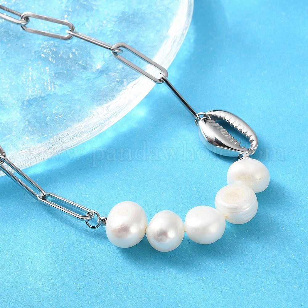 304 ожерелья из нержавеющей стали и натурального жемчуга в виде скрепок для женщин, белые