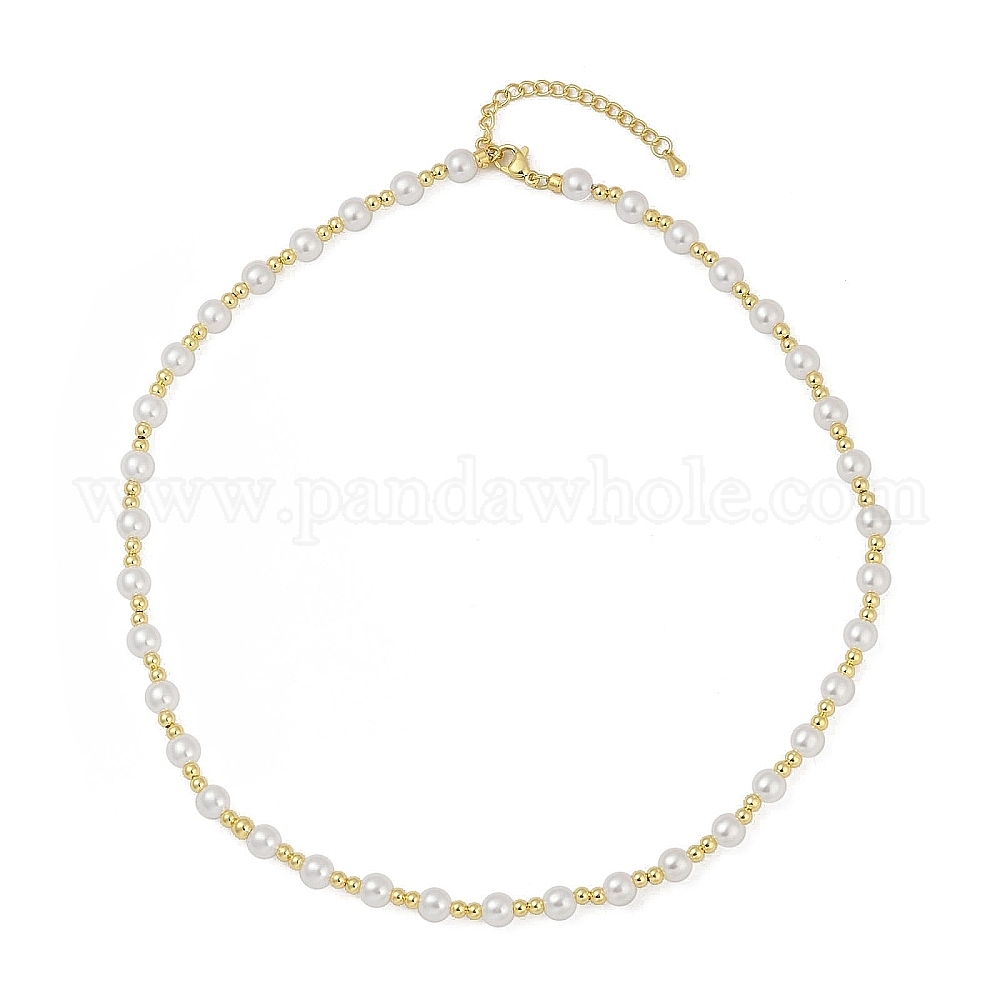 Ожерелья из цепочек ручной работы из латуни и белого АБС-пластика с имитацией жемчуга, долговечный, без кадмия и без свинца, стойки покрытие