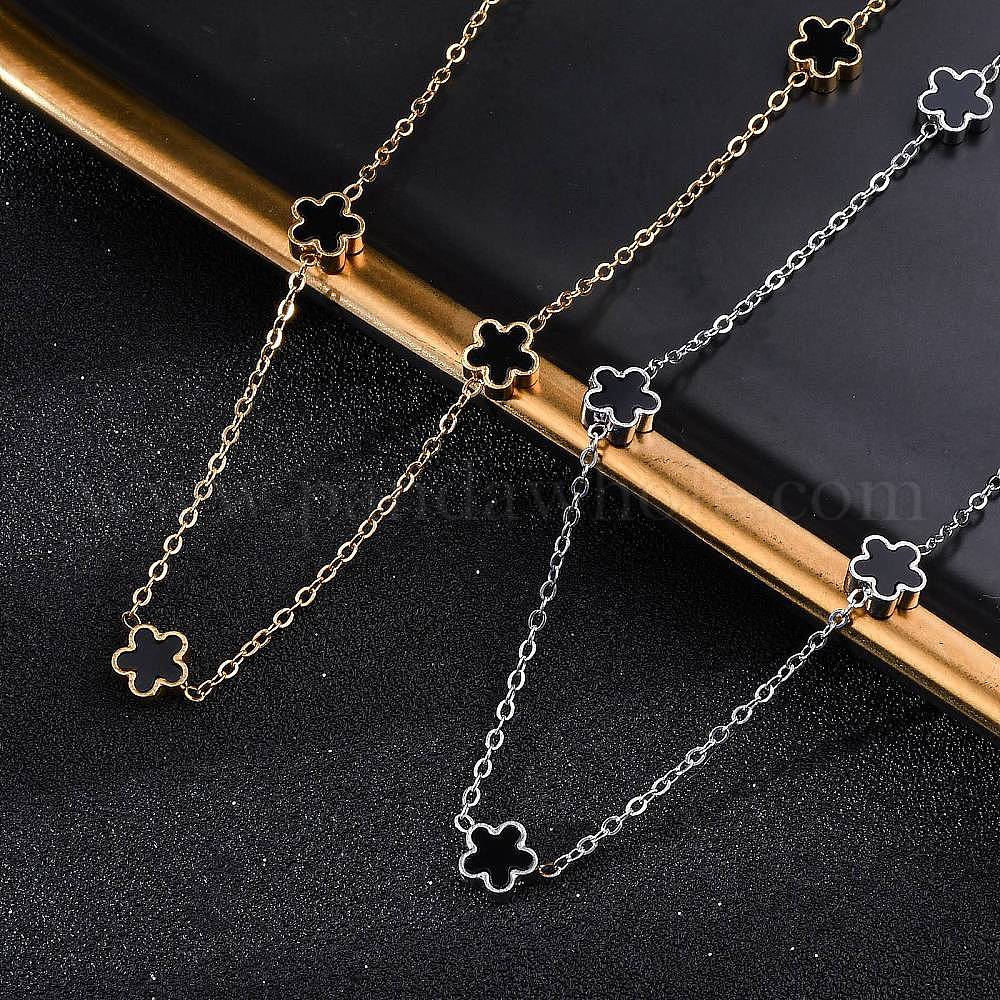 • Нержавеющая Сталь Цвет 304 ожерелья из нержавеющей стали и имитации черных ракушек в виде цветочных цепочек, цвет нержавеющей стали, 16.14 дюйм (41 см)