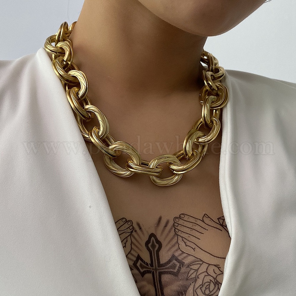 • Золотой Унисекс толстые алюминиевые двухзвенные цепочки ожерелья, золотые, 16.93 дюйм (43 см)
