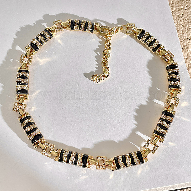 Женские ожерелья из прямоугольной цепи с зебровым принтом, хрустальными стразами и эмалью, золотые