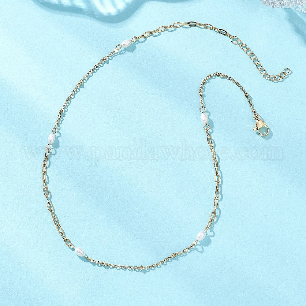 Женские ожерелья из натурального жемчуга, риса и нержавеющей стали с цепочкой-скрепкой, кремово-белые