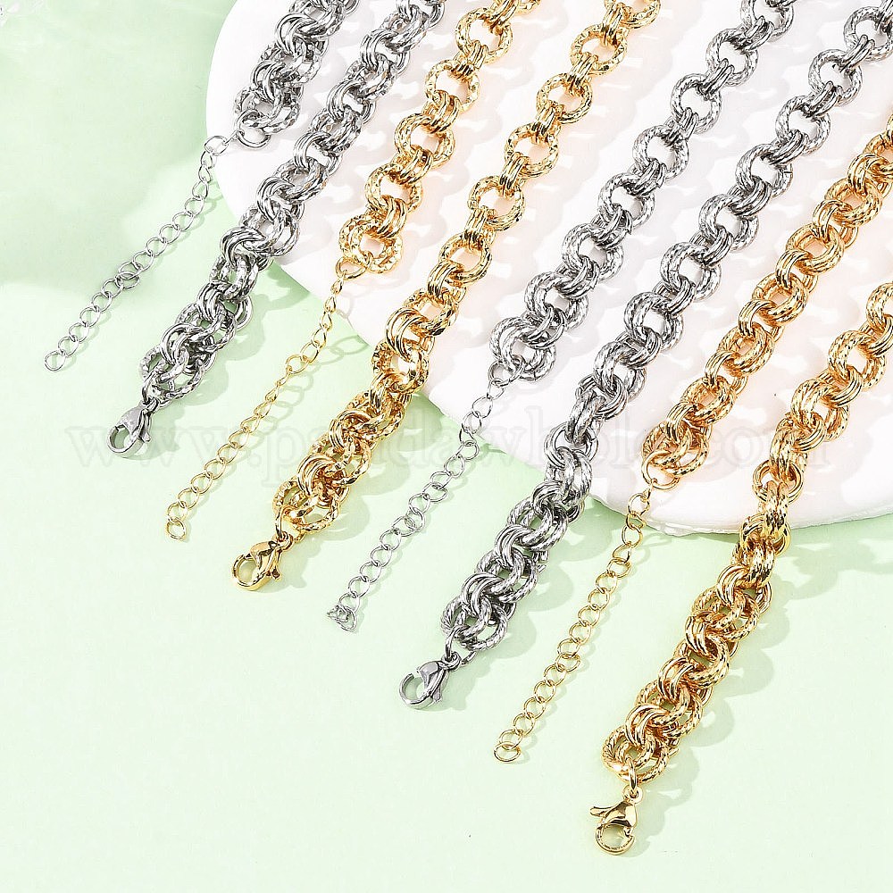 • Нержавеющая Сталь Цвет 8мм 304 Текстурированные двойные цепочки-роло из нержавеющей стали для женщин, не тускнеет, цвет нержавеющей стали, 14.57 дюйм (37 см)