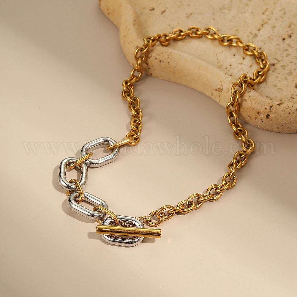 • Золотой & Цвет Нержавеющей Стали Двухцветная 304 цепочка из нержавеющей стали с овальными звеньями или ожерелье для женщин, золотые и нержавеющая сталь цвет, 17.52 дюйм (44.5 см), ссылка: 20x14x3.5мм и 9x7x2мм