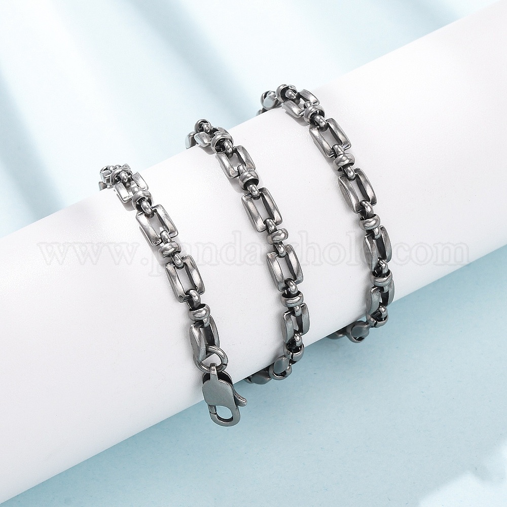 • Античное Серебро Унисекса 304 ожерелья из нержавеющей стали, ожерелья цепи, цепные цепи, прямоугольные, античное серебро, 20.47 дюйм (52 см)