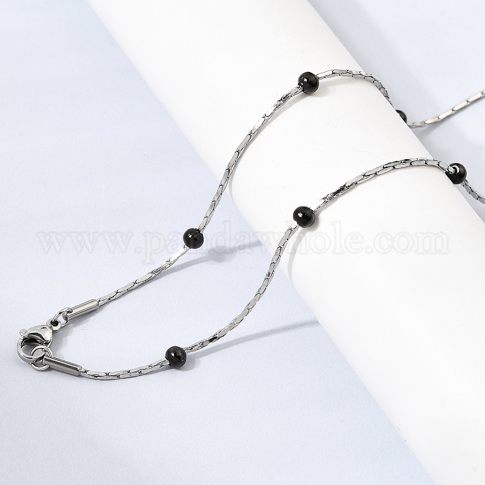 304 Цепочка из нержавеющей стали в стиле «бостонское плетение» с бусинами-ронделями