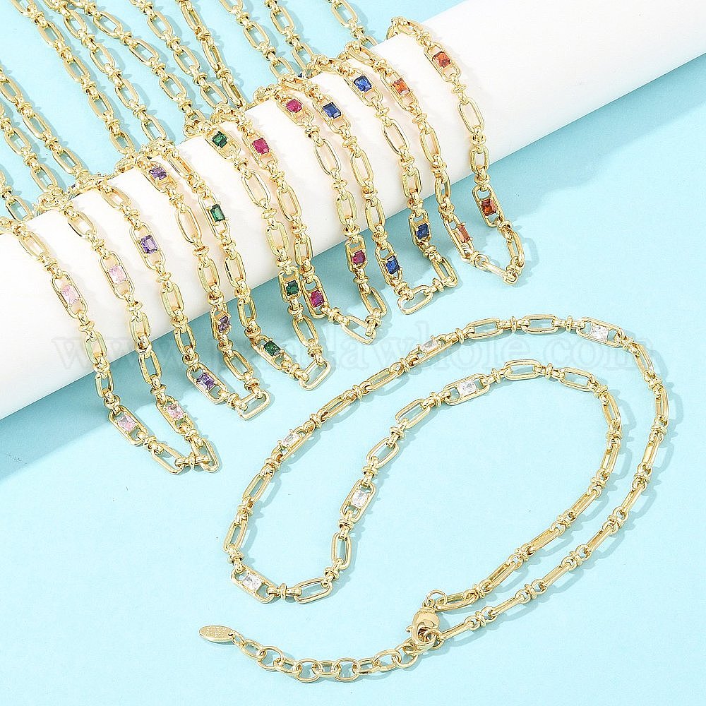 • Зеленый 5ММ латунная цепочка с овальными звеньями, инкрустированная кубическим цирконием, без кадмия и без свинца, стойки покрытие, долговечный, реальный 18 k позолоченный, зелёные, 18.19 дюйм (46.2 см)