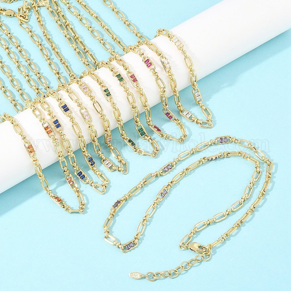 • Зеленый 5ММ латунная цепочка с овальными звеньями, инкрустированная кубическим цирконием, без кадмия и без свинца, стойки покрытие, долговечный, реальный 18 k позолоченный, зелёные, 18.11 дюйм (46 см)