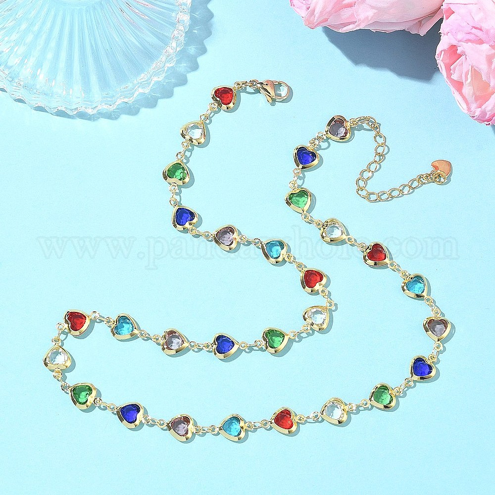 Красочные цепочки в форме сердца из латуни со стеклянными звеньями для женщин