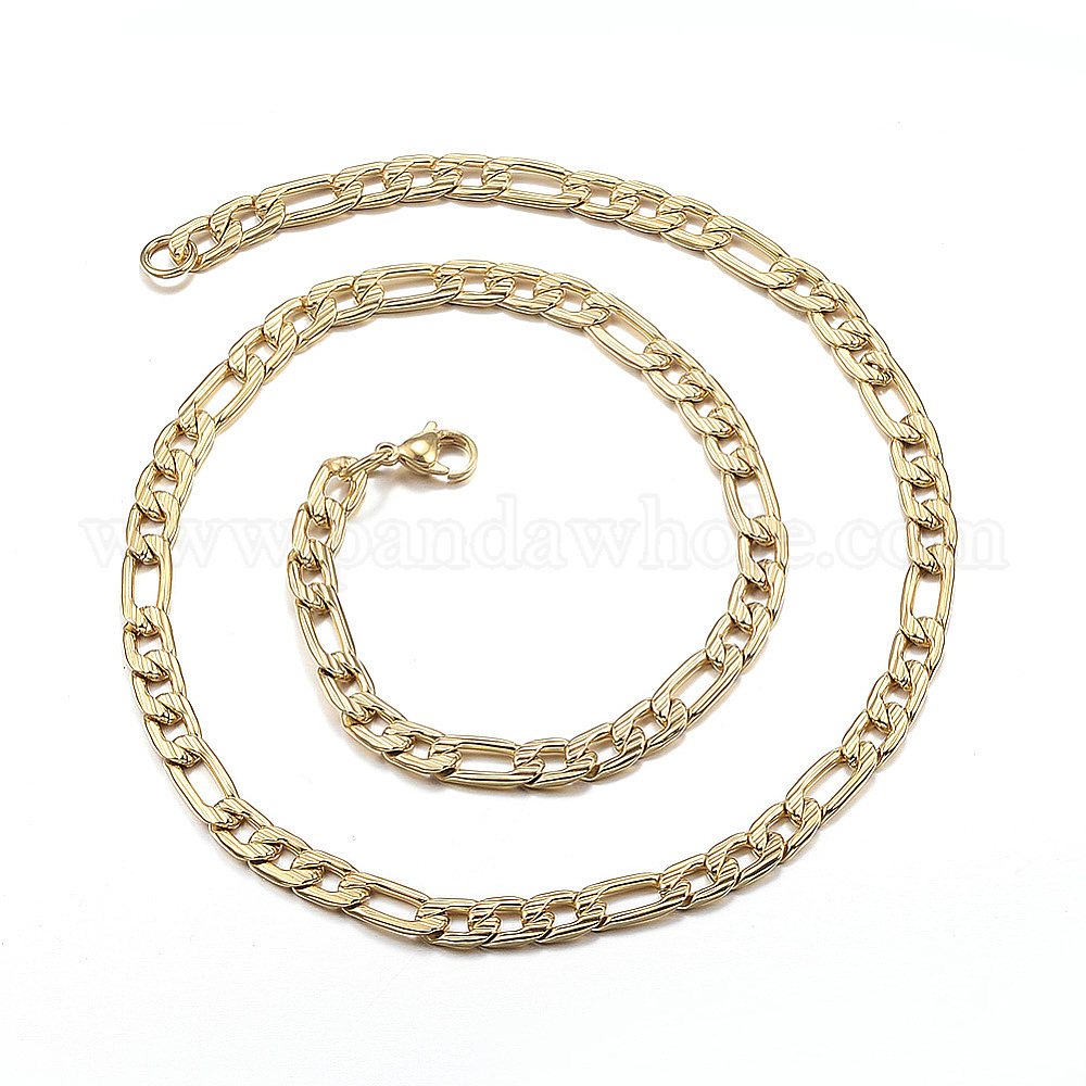 • Настоящее золото 18K 304 ожерелья нержавеющей стали, Фигаро-цепи, с застежкой омар, реальный 18 k позолоченный, 19.6 дюйм (50 см), 6 мм