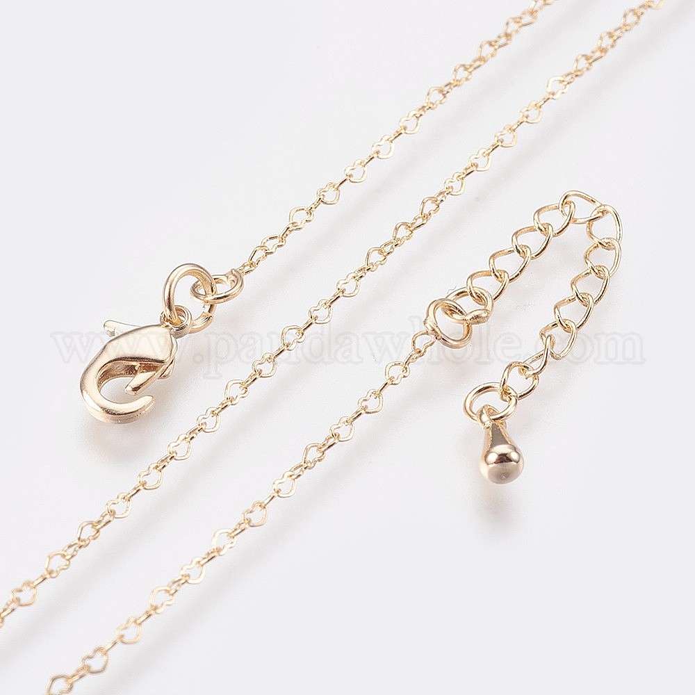 • Настоящее золото 18K Долговечные колье из латунных сердечек, с застежкой омар коготь, без никеля , реальный 18 k позолоченный, 18.1 дюйм (46 см), 2 мм, сердечная связь: 3x2x0.7 мм