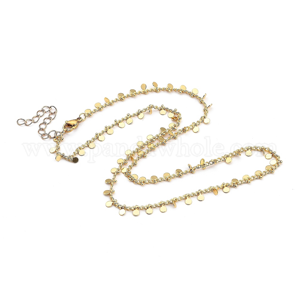 Латунные Снаряженная цепи ожерелья, с плоскими круглыми подвесками из латуни и 304 застежками из нержавеющей стали в форме когтей лобстера