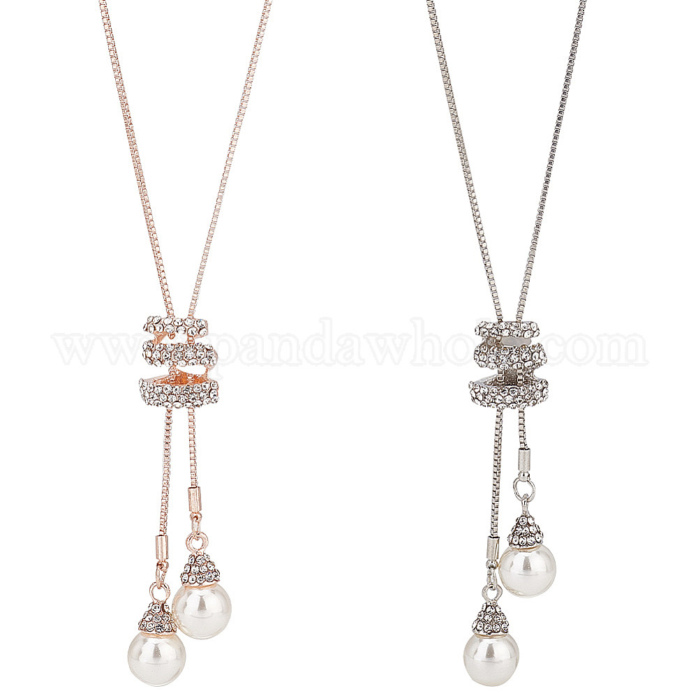 2 шт. 2 цветной пластиковый искусственный жемчуг подвеска лариат ожерелье с хрустальными стразами, ювелирные изделия из сплава для женщин (02HCHY)