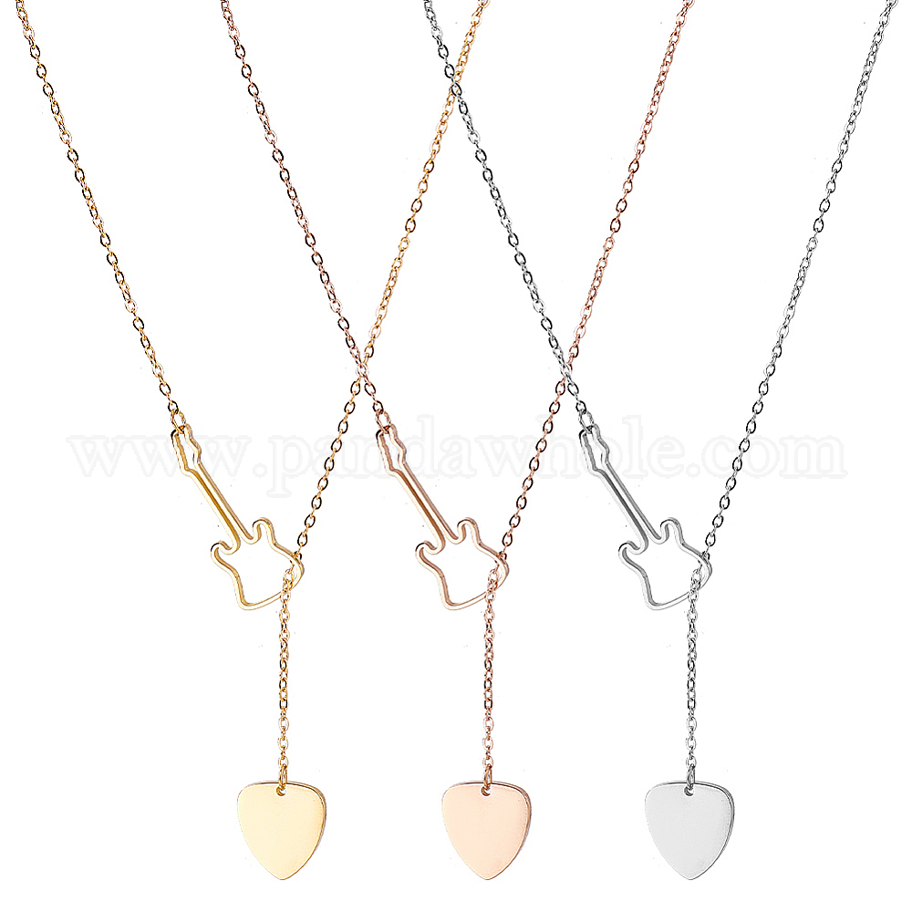 3шт 3 цвета комплект из нержавеющей стали лариат ожерелья, регулируемые ожерелья с подвеской в виде гитары и сердца
