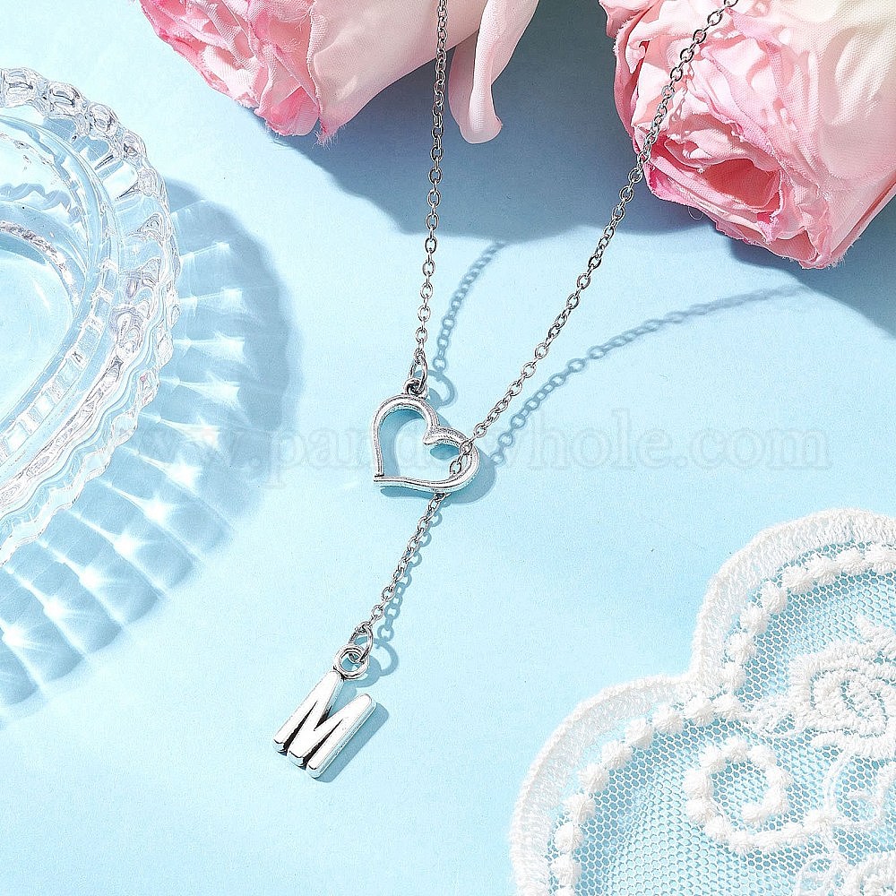 • Античный Серебристый & Цвет Нержавеющей Стали Регулируемые 304 ожерелья-лариаты из нержавеющей стали, ожерелья из сплава с подвеской в виде буквы «м» на день матери, старинное серебро и цвет нержавеющей стали, 20.87 дюйм (53 см)