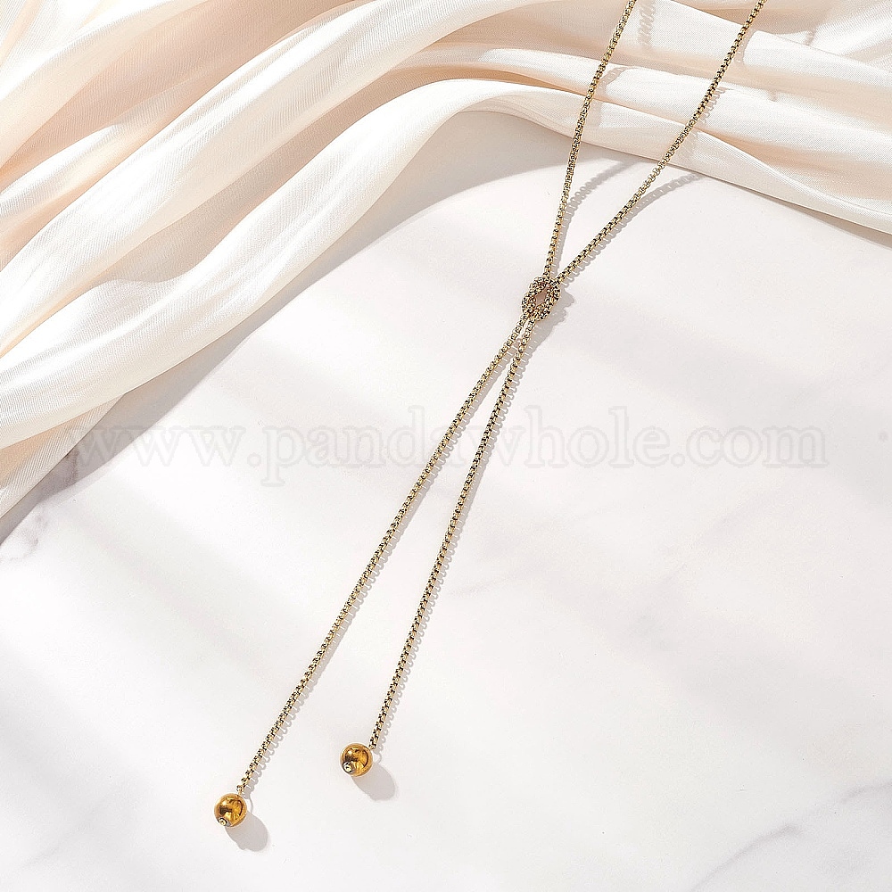 • Золотой 304 Колье-лариата из нержавеющей стали с коробчатой цепочкой, подвески из круглых бусин из синтетического немагнитного гематита с гальваническим покрытием, золотые, 32.28 дюйм (82 см)