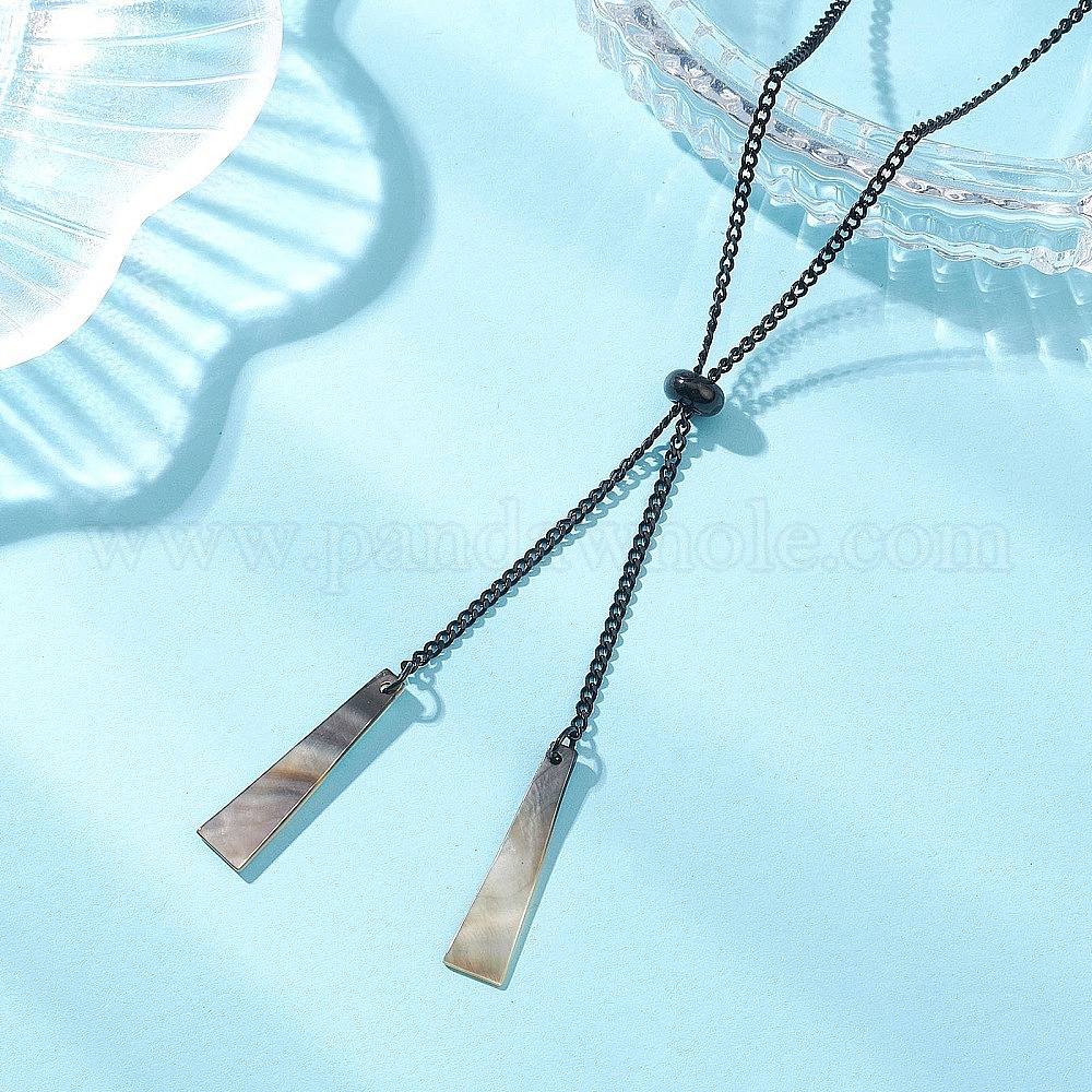 Подвеска в форме трапеции из натуральной черной раковины 304 цепочка-лариата из нержавеющей стали