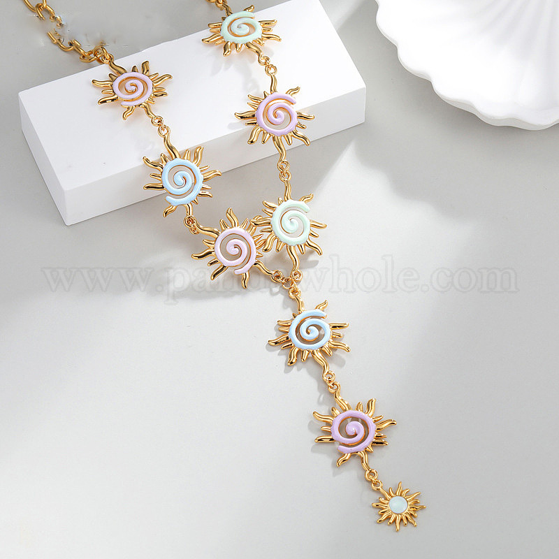 Богемные 304 ожерелья из нержавеющей стали с разноцветной эмалью в виде подсолнухов для женщин (03B3Z7)