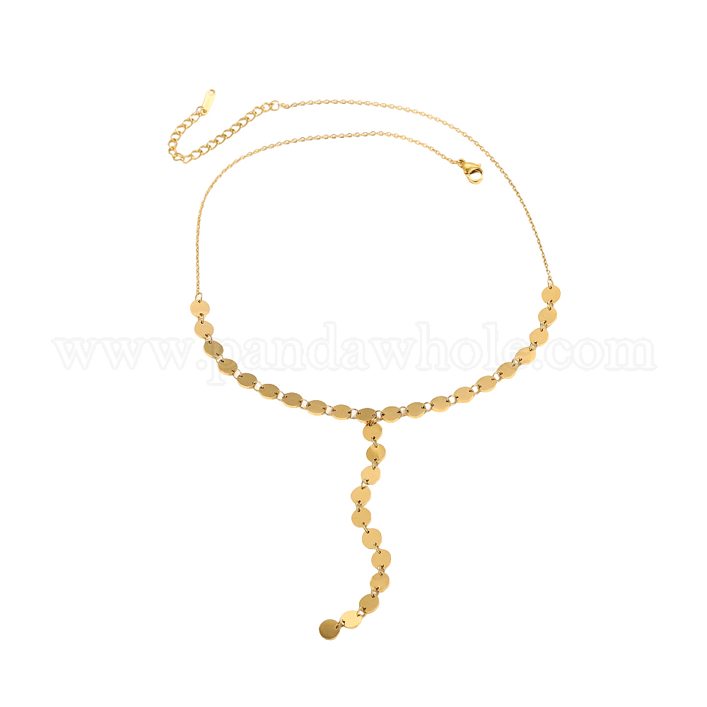 Плоские круглые 304 ожерелья из нержавеющей стали Y-образной формы для женщин, просто и изысканно, ионное покрытие (ip), долговечный