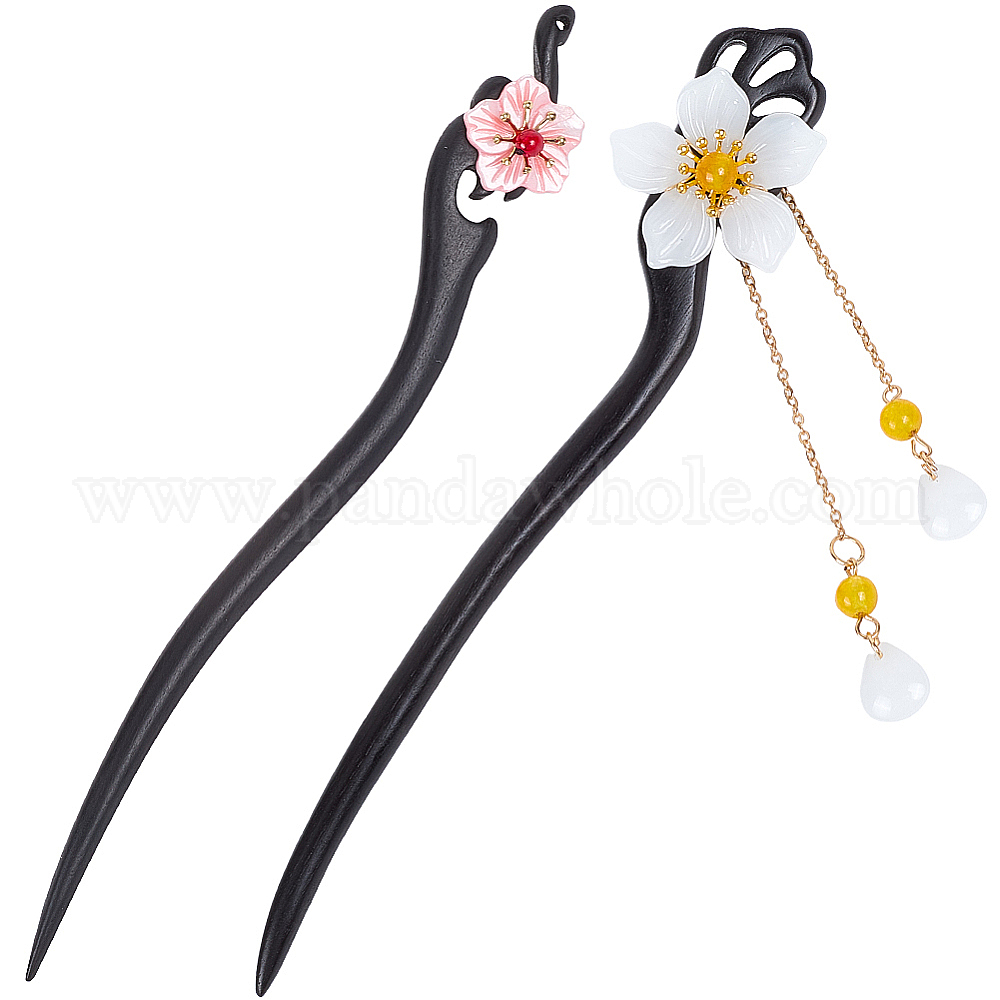 2шт 2 стили деревянные палочки для волос, цветочное винтажное украшение для волос