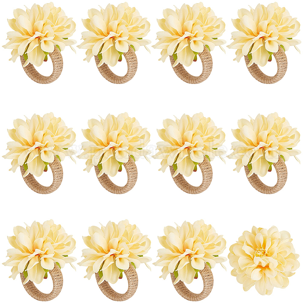 12шт. джутовые плетеные кольца для салфеток, с искусственным цветком из полиэфира, для свадьбы, День святого Валентина, Годовщина