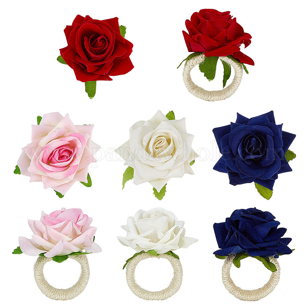 8 шт. 4 цветные кольца для салфеток из пеньковой веревки и полиэстера с изображением розы, держатель для салфеток, ресторанные повседневные аксессуары (0355F4)