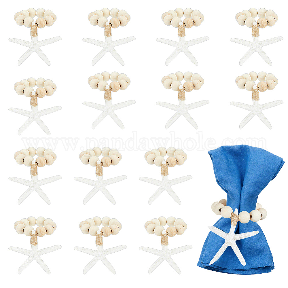 15шт. деревянные бусины кольца для салфеток, с джутовым шнуром и подвеской в виде морской звезды из смолы