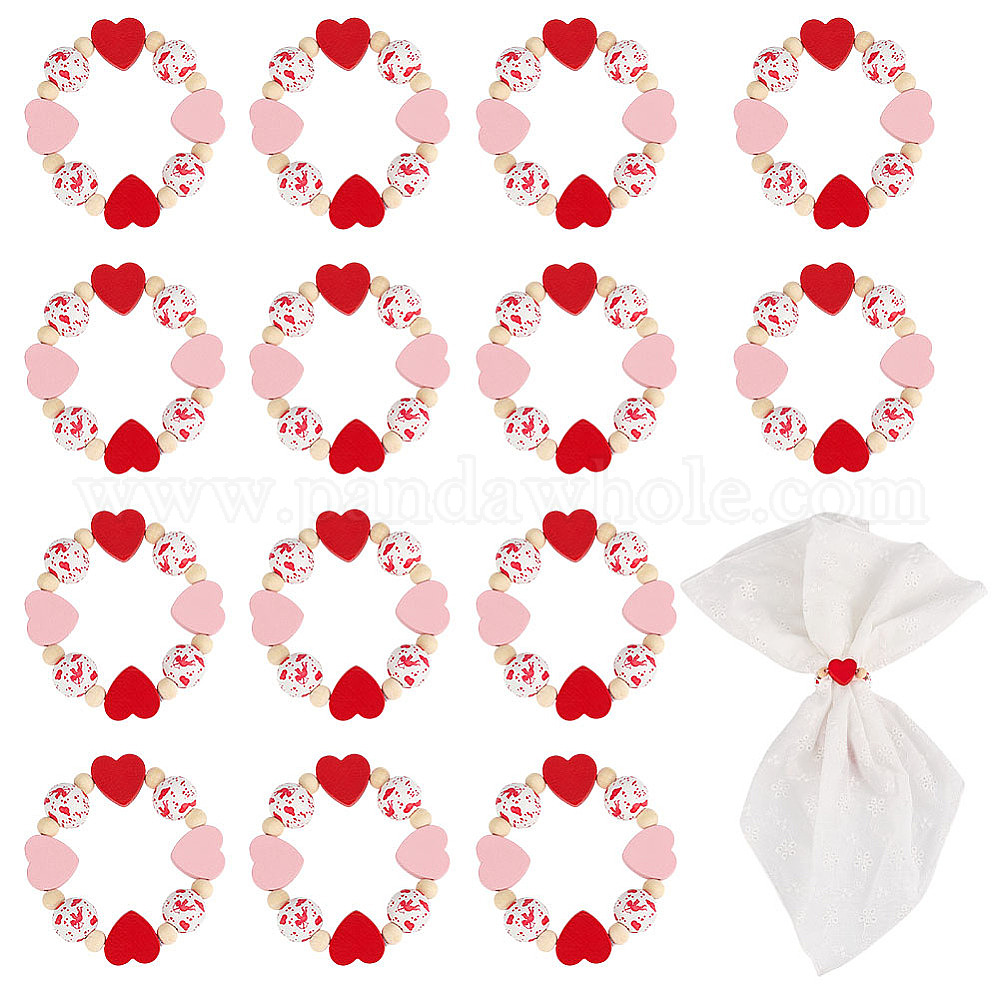 15 шт. Кольца для салфеток из натурального дерева с сердечками и круглыми бусинами ко Дню святого Валентина, украшение для настольных салфеток, украшения для свадебного банкета, дня рождения, обеденного стола