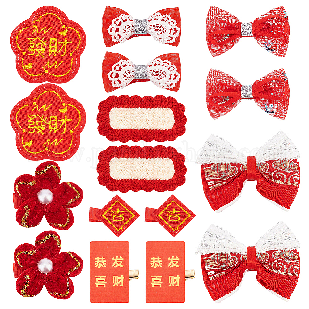 Набор заколок для волос из ткани «крокодил» с бантом и цветком в китайском стиле на Новый год, аксессуары для волос на весенний праздник подарок детям