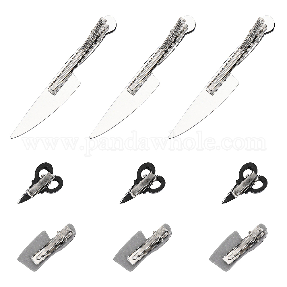 9 шт 3 инструменты для укладки заколки для волос из смоляной кожи аллигатора, аксессуары для волос для женщин и девочек, с железной фурнитурой, кухонный нож/ножницы/нож (02HTA8)