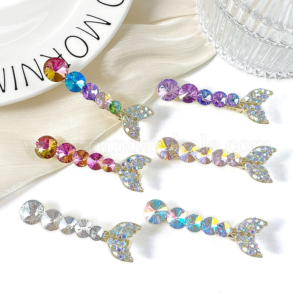 Заколки для волос из сплава кожи аллигатора для женщин и девочек, с k 9 стеклом, рыбий хвост