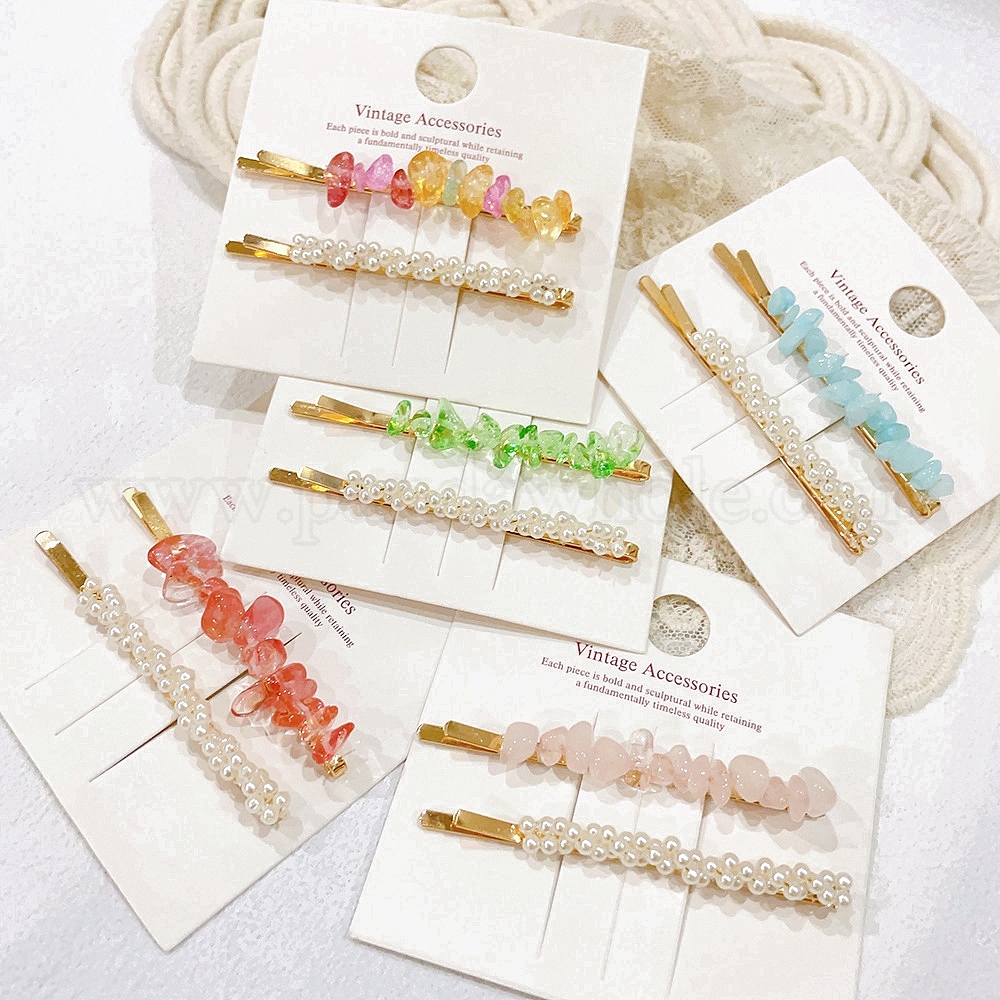 Наборы заколок для волос из искусственного жемчуга из кожи аллигатора, с натуральными хрустальными аксессуарами для волос для гриль