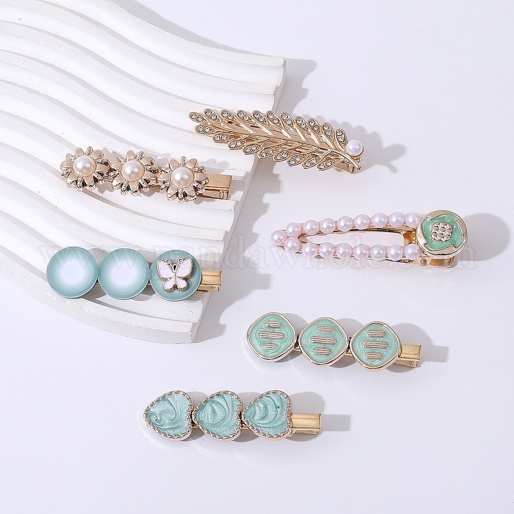 6шт. заколки для волос из сплава кожи аллигатора, Эмаль стиле, с имитацией жемчужина бисера, аксессуары для волос для женщин и девочек