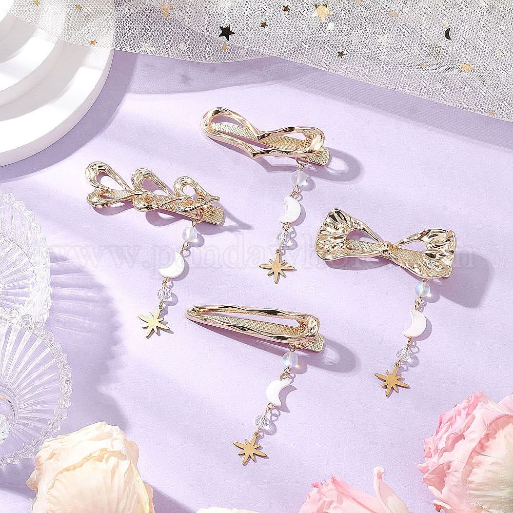 Сплав зажимами волос, с синтетическими бусинами из лунного камня, натуральные бусины из пресноводных ракушек и стеклянные бусины