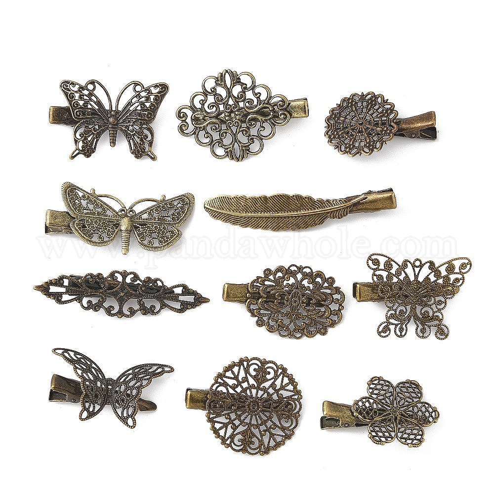 • Античная Бронза Железные заколки для волос из кожи аллигатора для женщин и девочек, с латунной фурнитурой , бабочки и цветы, античная бронза, 12.5~30.5x37~62.5x9.5~12 мм