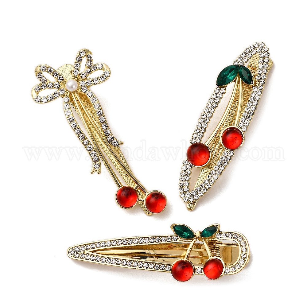 Заколки для волос из крокодиловой кожи вишневого цвета с золотистым сплавом, аксессуары для волос для женщин и девочек, смолой и горный хрусталь