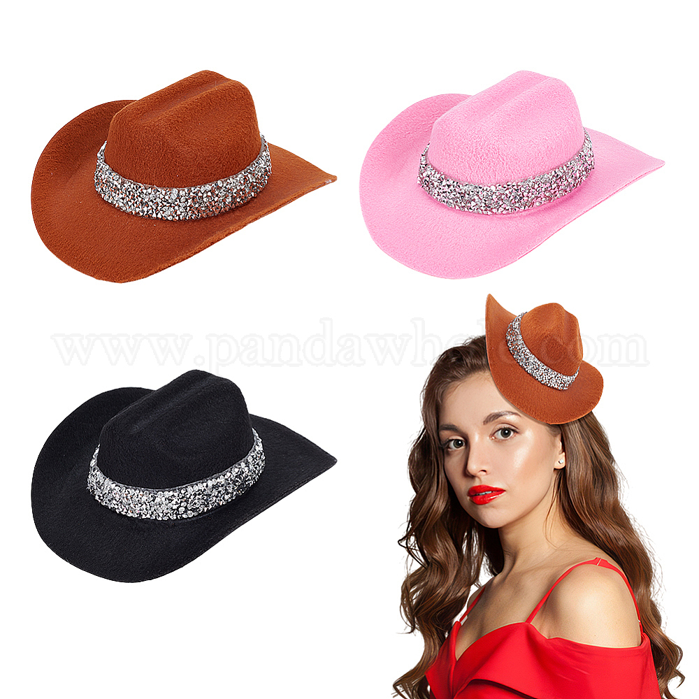 3шт. 3 цвета нетканого материала со стразами и железными заколками-крокодилами для волос, шляпа
