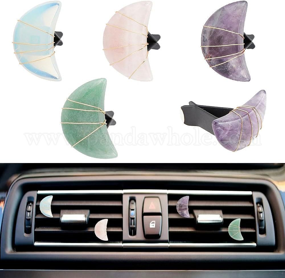 4шт лунный драгоценный камень автомобильные вентиляционные зажимы, симпатичная автомобильная отделка салона, с магнитным ферромарганцевым железом и пластиковым зажимом