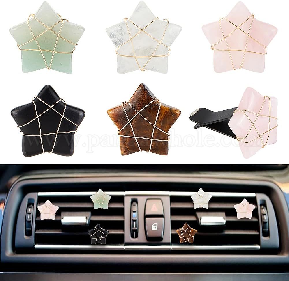 • Смешанные камни 5 Зажимы для вентиляционных отверстий автомобиля с драгоценными камнями в виде звездочек, симпатичная автомобильная отделка салона, с магнитным ферромарганцевым железом и пластиковым зажимом, 38 мм