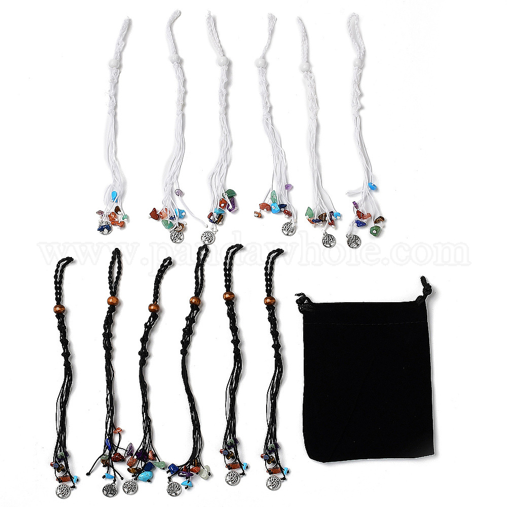12шт дерево жизни плетеный нейлоновый шнур макраме мешочек кулон украшения, вышитый бисером подвесной орнамент из драгоценных камней, сменный камень, с бусинами из окрашенного натурального дерева