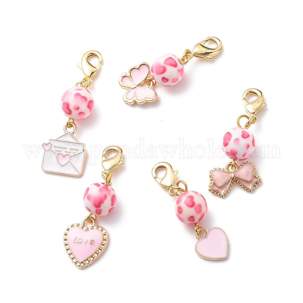 Наборы украшений из сплава эмали на день святого валентина, подвески на клипсах, с шариками из смолы, окрашенными распылением, и латунными застежками-карабинами, для брелка, украшение для кошелька