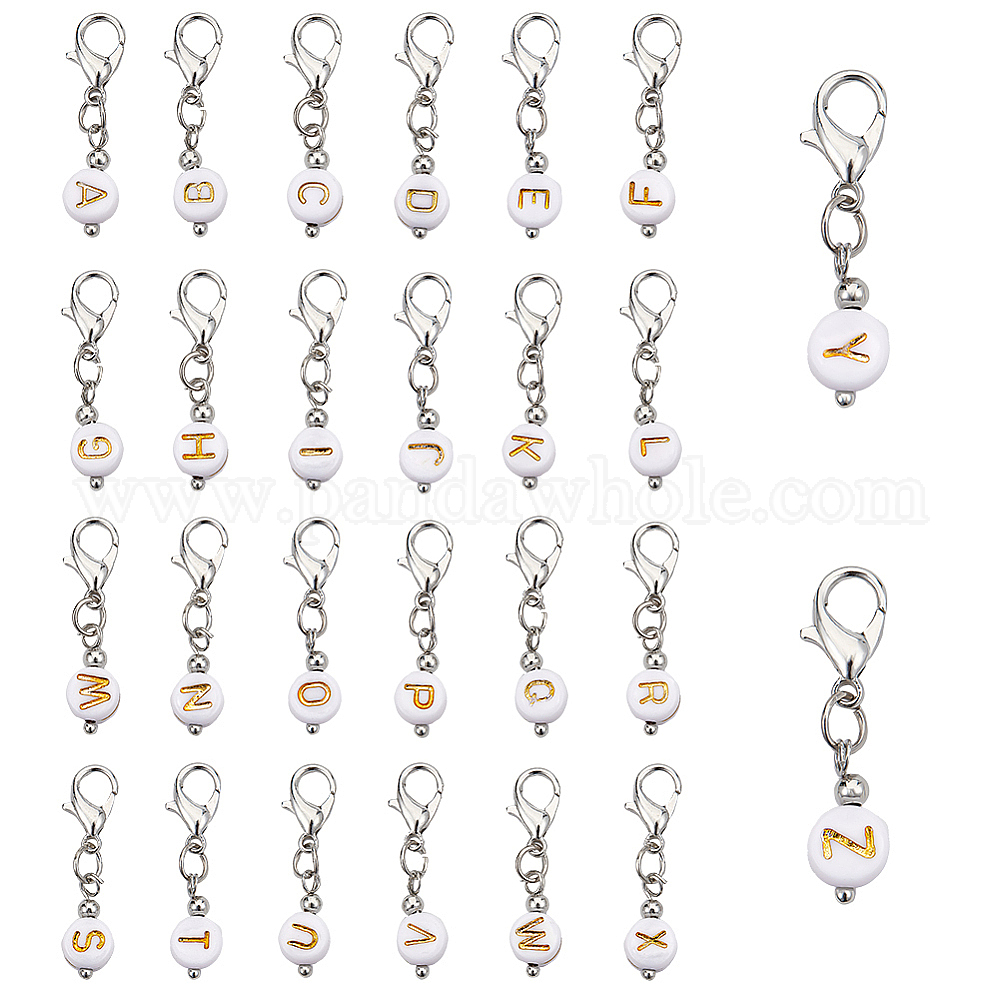 2 комплекты позолота акриловые подвески украшения, с застежками-лобстерами из цинкового сплава и железными накладками, плоско-круглые с алфавитами