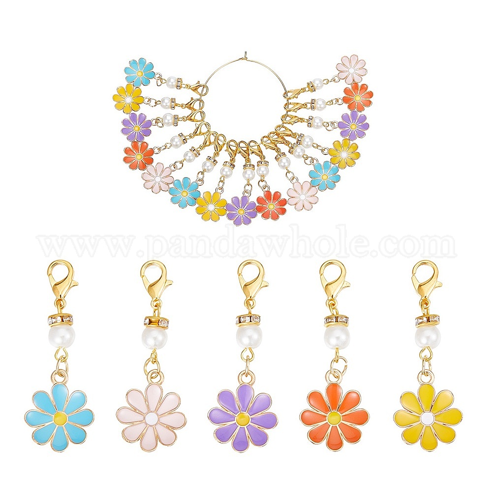 Наборы украшений для подвесок из цветочного сплава и эмали, с латунными кольцами