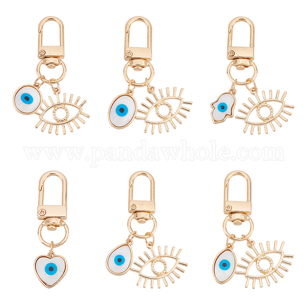 6 шт 6 стиль сглаза смоляные подвески украшения для женщин, с проушиной из цинкового сплава и поворотной застежкой, золотые, сердце и капля, овал и рука хамса