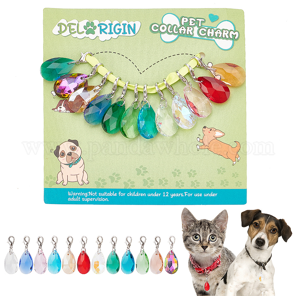 12шт 12 цвета граненые стеклянные подвески-капли украшения украшения, подвески из цинкового сплава с застежкой-лобстером, подвески на клипсах