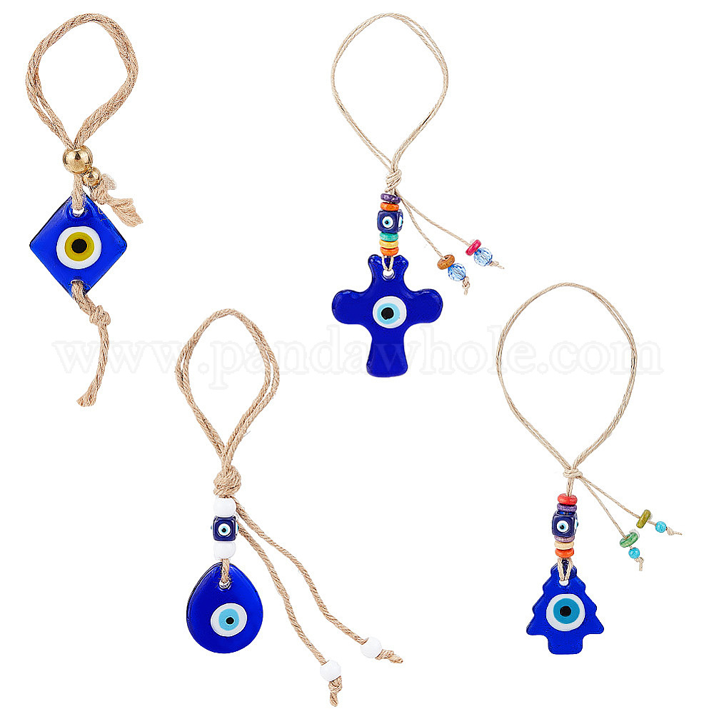 Ahademaker 4шт 4 стиль стеклянный кулон сглаза украшения, с пластиковыми бусинами и пеньковой веревкой, слеза и крест и ромб и дерево